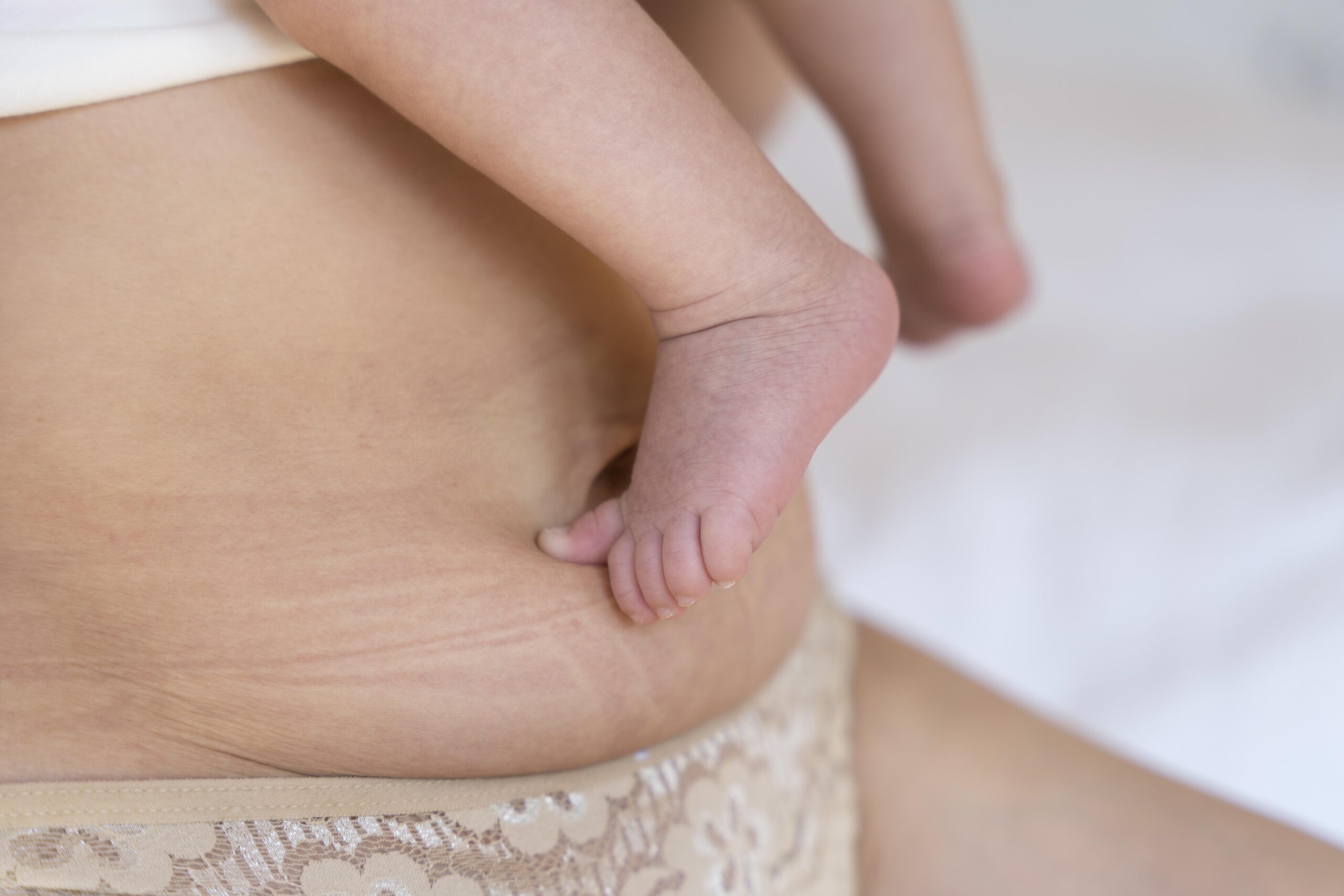 Fresh stretch marks – red, purple, or pink in color